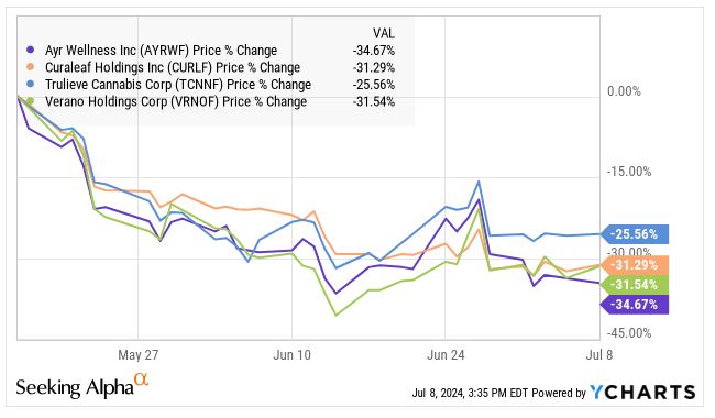 We warned readers on May 17th to be careful investing in MSOs that are big in Florida. The entire cannabis market has pulled back since then, and the entire group of MSOs is sharply lower. The four leaders in Florida have declined substantially: