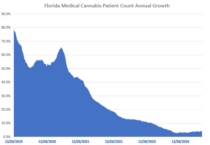 Some program improvements over the years have helped excite Florida residents about the medical cannabis program, which now has smokable flower and edibles. Then, the post-pandemic population boom aided patient growth. There has been an increase in dispensaries to 730 from 674 a year ago. This is an increase of 8.3%, which is much faster than the medical cannabis patient growth has been at 4.3% since then.