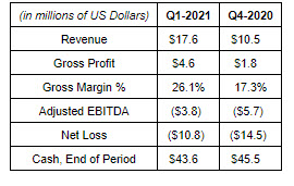 - Record Q1 2021 revenue of $17.6 million, an increase of 219.4% YoY and 67.9% quarter over quarter