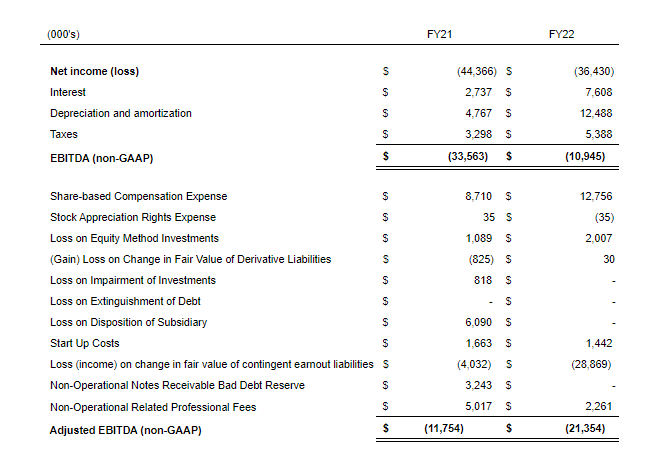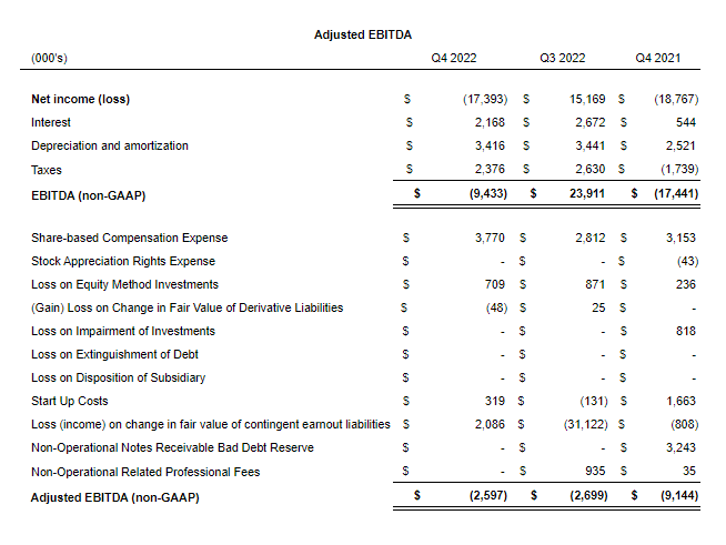 The Company has provided a table above that provides a reconciliation of the Company’s net loss to Adjusted EBITDA for the three months ended December 31, 2022 compared to three months ended December 31, 2021 and three months ended September 30, 2022.