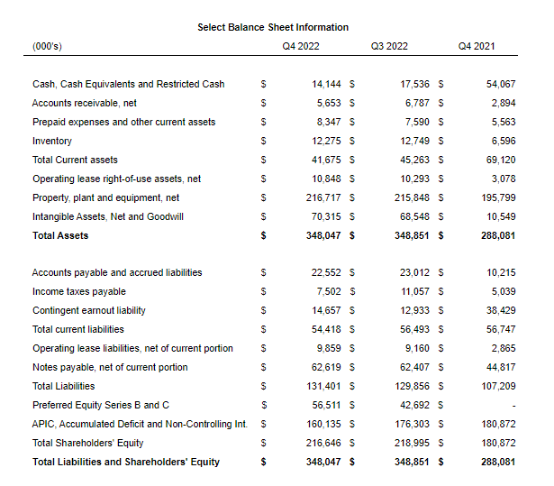 “Thanks to our record low cost of production in Q4 of $127 per pound, even if prices fall, we’ll be well positioned to have a positive gross margin in wholesale biomass under almost any scenario; and with our low-cost structure, we can weather price swings even when others can’t. We are focused on maintaining the highest quality flower with the lowest cost structure in the industry to maximize our cashflow over the long run, and we believe that the events of the past two years have validated this approach.”