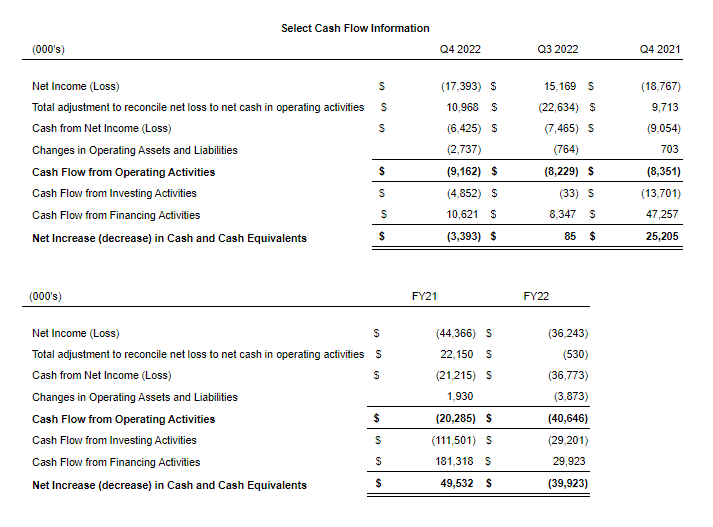 - Adjusted EBITDA4 was $(2.6) million, compared to $(9.1) million in Q4 2021 and $(2.7) million in Q3 2022.