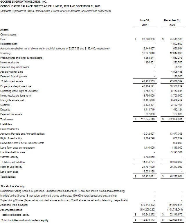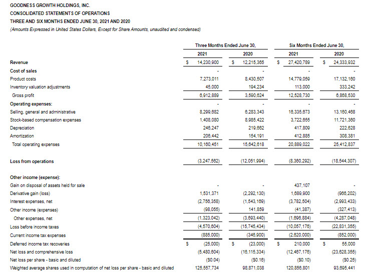 MINNEAPOLIS, Aug. 13, 2021 /PRNewswire/ — Goodness Growth Holdings, Inc. (“Goodness Growth” or the “Company”) (CSE: GDNS; OTCQX: GDNSF), a physician-led, science-focused cannabis company and IP incubator, today reported financial results for its second quarter ended June 30, 2021. All currency figures referenced in this press release reflect U.S. dollar amounts.