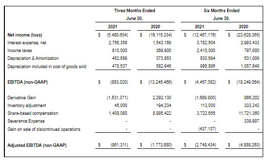 EBITDA, as described in accompanying disclosures and footnotes, was a loss of $0.9 million during Q2 2021, compared to a loss of $13.2 million in Q2 2020. Adjusted EBITDA was a loss of $1.0 million in Q2 2021, as compared to a loss of $1.8 million in Q2 2020. Please refer to the Supplemental Information and Reconciliation of Non-GAAP Financial Measures at the end of this press release for additional information.