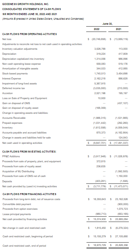 Goodness Growth Holdings Announces Second Quarter 2022 Results