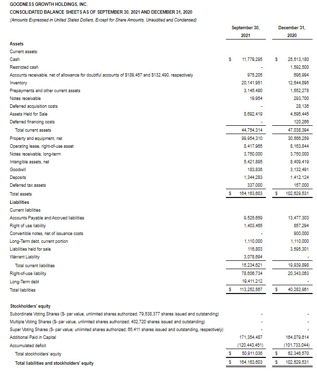 Goodness Growth Holdings Announces Third Quarter 2021 Financial Results