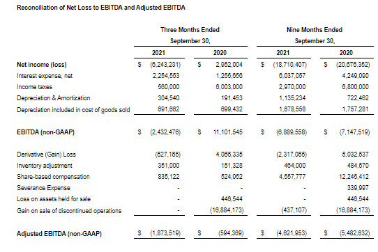 EBITDA, as described in accompanying disclosures and footnotes, was a loss of $2.4 million during Q3 2021, compared to a gain of $11.1 million in Q3 2020. Adjusted EBITDA was a loss of $1.9 million in Q3 2021, as compared to a loss of $0.6 million in Q3 2020. Please refer to the Supplemental Information and Reconciliation of Non-GAAP Financial Measures at the end of this press release for additional information.