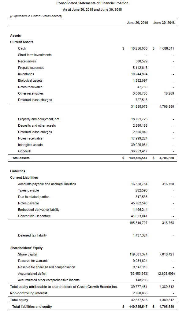 COLUMBUS, OH, Oct. 23, 2019 /PRNewswire/ – Green Growth Brands Inc. (GGB or the Company) (CSE: GGB) (OTCQB: GGBXF) today reported its results for the fourth quarter and full year ended June 30, 2019. The Company reported total revenue for fiscal 2019 of $15.7 million. For the three month period ended June 30, 2019, the Company reported a 29% quarter-over-quarter increase in revenue to $7.2 million.