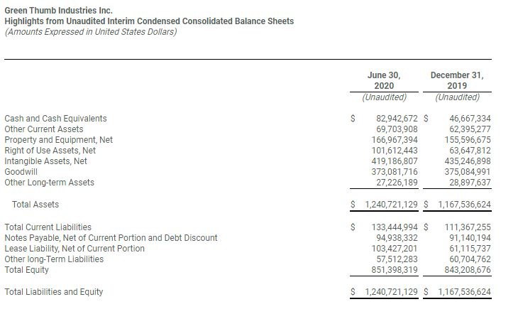 Green Thumb Industries Reports Second Quarter 2020 Results