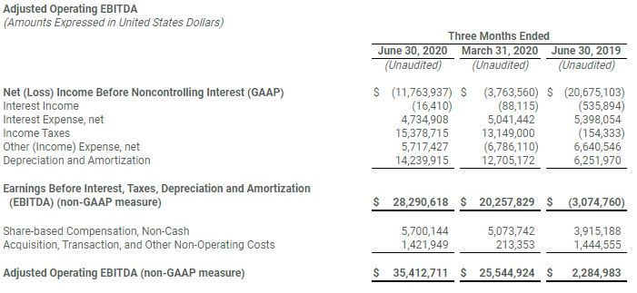 “We opened six new stores during the quarter, bringing total stores to 48 nationwide, and successfully introduced an e-commerce platform enabling delivery and curb-side pickup. We also improved standardization and automation in production, resulting in improved speed-to-market of our consumer products. In early July, we opened our Toledo, Ohio manufacturing facility and began production and distribution of our brand portfolio in Ohio. We expect this, along with other capacity expansion projects in Illinois, Pennsylvania and New Jersey, to further propel our business in the second half of 2020.”