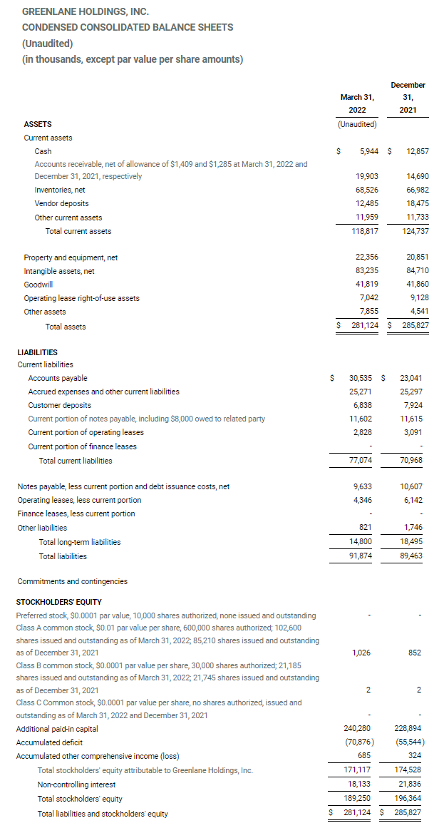 BOCA RATON, FL / ACCESSWIRE / May 17, 2022 / Greenlane Holdings, Inc. (“Greenlane” or “the Company”) (NASDAQ:GNLN), one of the largest global sellers of premium cannabis accessories, child-resistant packaging, and specialty vaporization products, today reported financial results for the first quarter ended March 31, 2022 (“Q1 2022”).