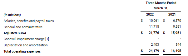 Salaries, benefits and payroll taxes expenses increased by 58% to $10.1 million for Q1 2022, compared to $6.4 million for the same period in 2021, primarily due to an increase related to the KushCo merger, an increase in severance of $0.6 million and an increase in stock compensation expense of $0.4 million. The increase was offset by a salaries and payroll taxes decrease related to a reduction in force we completed in March 2022, which we expect to result in approximately $8.0 million in annualized cash compensation cost savings. This reduction in force is a part of our 2022 Plan to reduce our cost structure, increase liquidity and accelerate our path to profitability.
