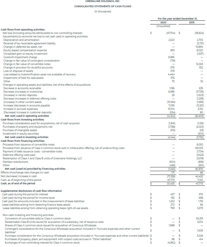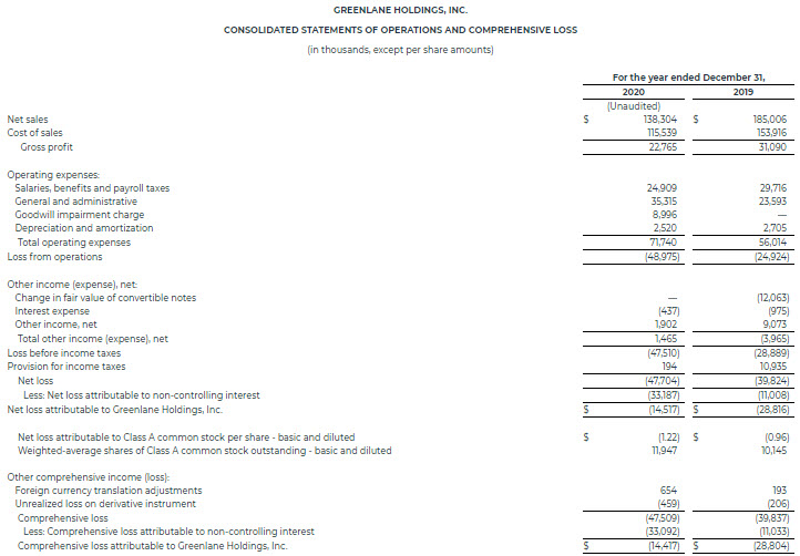 This press release includes historical consolidated results for the periods presented of Greenlane Holdings, LLC, the predecessor of Greenlane Holdings, Inc., for financial reporting purposes. Accordingly, the consolidated financial statements for periods prior to the completion of the IPO on April 23, 2019 have been adjusted to combine the previously separate entities for presentation purposes. Amounts for the period from January 1, 2019 through April 22, 2019 represent the historical operations of Greenlane Holdings, LLC. The amounts for the period from April 23, 2019 through December 31, 2019, and from January 1, 2020 through December 31, 2020 reflect the consolidated operations of Greenlane Holdings, Inc.