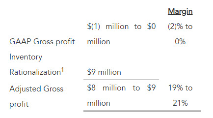 Adjusted gross margin is a supplemental non-GAAP financial measure, which the Company calculates as total revenues less cost of revenues, prepared in accordance with GAAP, adjusted for certain non-recurring, non-cash items to the extent such items relate to cost of revenues, including charges relating to the Company’s inventory rationalization initiatives. The Company uses Adjusted gross margin as a supplemental performance measure because it believes that Adjusted gross margin is beneficial to investors for purpose of measuring the Company’s operational performance, exclusive of certain non-recurring non-cash items that are not expected to be incurred in future periods. Specifically, in excluding charges relating to the Company’s inventory rationalization initiatives, which the Company does not believe are indicative of the Company’s operating performance, Adjusted gross margin provides a performance measure that, when compared period-over-period, more accurately reflects the Company’s operational performance. Adjusted gross margin should be considered supplemental to and not a substitute for financial information prepared in accordance with GAAP. The Company’s definition of Adjusted gross margin may differ from similarly titled measures used by other companies.