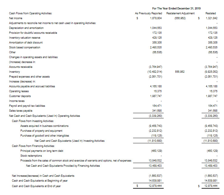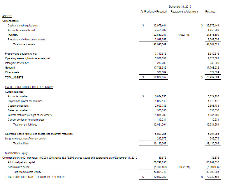 The following table compares previously reported balances, adjustments and restated balances as of December 31, 2019.