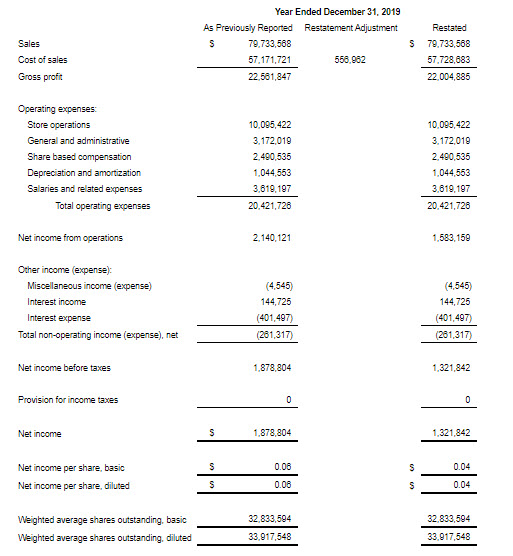 During the fourth quarter of 2020, we identified amounts presented in our inventory and costs of sales reported in prior years that required revision. The revised amounts resulted from an accumulation of errors related to rebates issued from vendors in our general ledger. We determined these errors accumulated in 2019 and prior years.