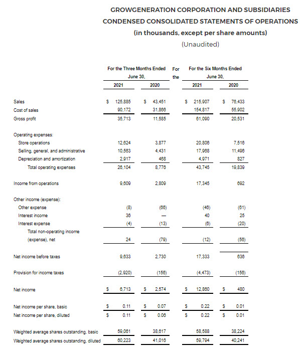 GrowGeneration Reports Record Second Quarter 2021 Financial Results