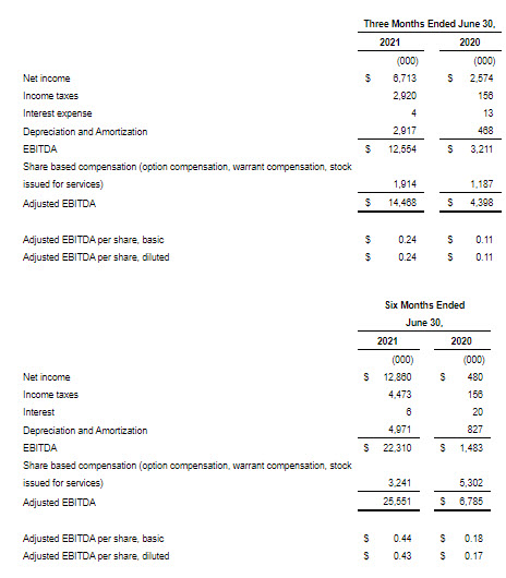 The Company also reported record second quarter 2021 GAAP pre-tax net income of approximately $9.6 million compared to pre-tax net income of $2.7 million in the same period last year. Diluted earnings per share, inclusive of tax expense, was $0.11 compared to a $0.06 in the same period last year.