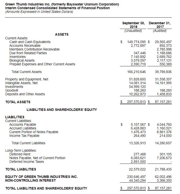 Green Thumb Industries (GTI) Announces Year-over-Year Revenue Growth of 344% and Sequential Revenue Growth of 26% for Third Quarter 2018