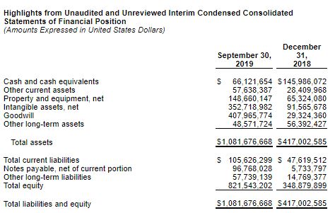 Total shares on a fully converted basis were 205,060,672 at September 30, 2019. Total fully diluted shares were 214,061,263 including options, warrants and restricted stock units (RSUs).