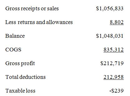 The income the taxpayer reported in Californians Helping to Alleviate Medical Problems v. Commissioner (“CHAMP”)[10] illustrates section 280E’s punitive effect. The taxpayer reported the following income and deductions from the business, a cannabis dispensary that also provided caregiving services:[11]