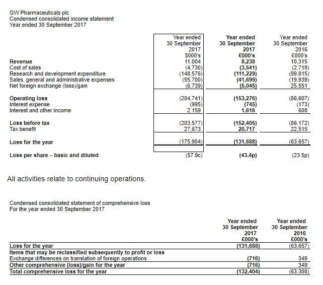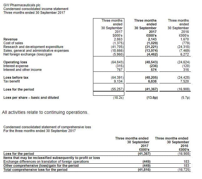 LONDON and CARLSBAD, Calif., Dec. 04, 2017 (GLOBE NEWSWIRE) — GW Pharmaceuticals plc (Nasdaq: GWPH) (GW, the Company or the Group), a biopharmaceutical company focused on discovering, developing and commercializing novel therapeutics from its proprietary cannabinoid product platform, announces financial results for the fourth quarter and year-ended 30 September 2017.