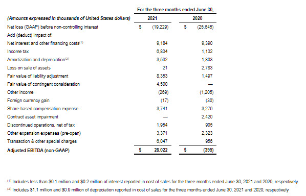 - Net loss before non-controlling interest was $19.2 million for the second quarter, compared to $23.0 million in the first quarter of 2021.