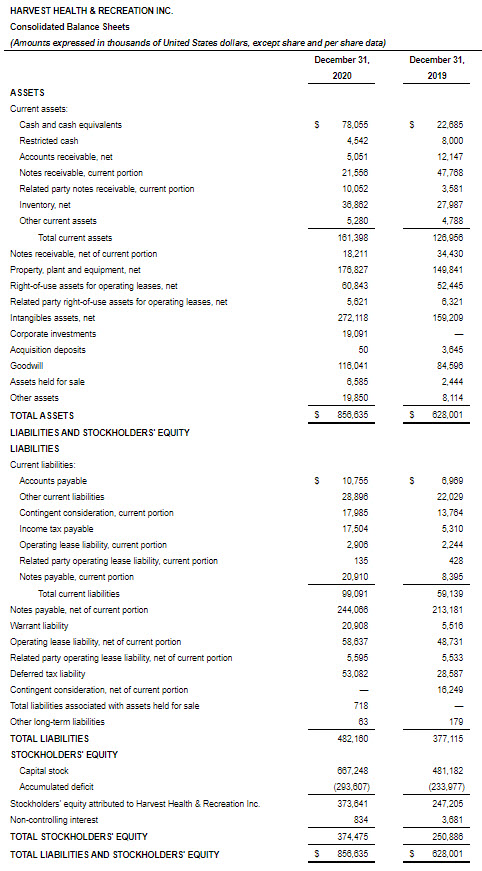 - During 2020 Harvest divested a group of select California retail assets and Arkansas retail and cultivation assets.