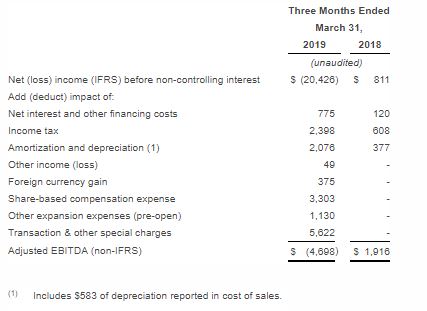 - Adjusted EBITDA for the 3 months ended March 31, 2019 was ($4.7) million (all dollars are in U.S. dollars, except where noted).