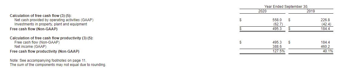 Free cash flow productivity: Ratio of free cash flow to net income (loss).