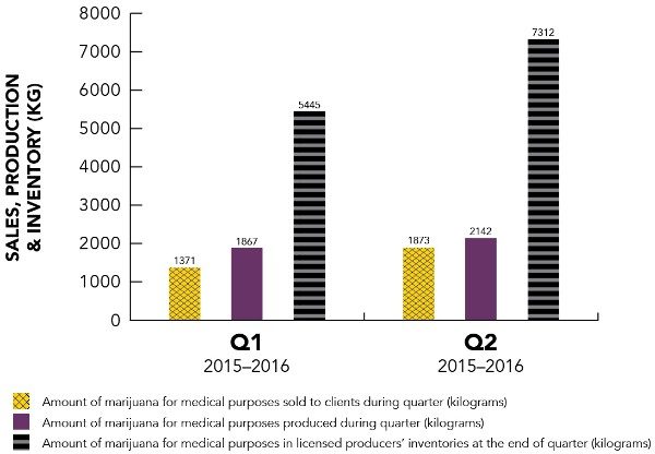 Health Canada, which oversees Canada’s medical cannabis program, released quarterly data on 01/18/16 for the quarter ending 09/30/15, the 2nd quarter of the fiscal year ending 03/31/16. The data can be found here.