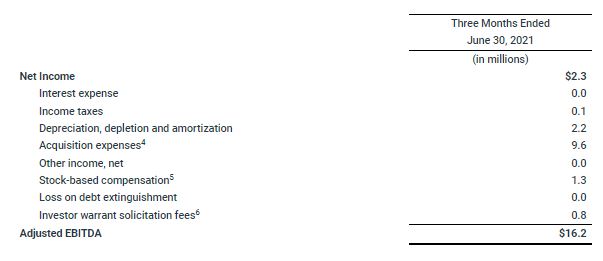 The following table reconciles Non-GAAP Adjusted EBITDA to the net income of $2.3 million for the three months ended June 30, 2021.