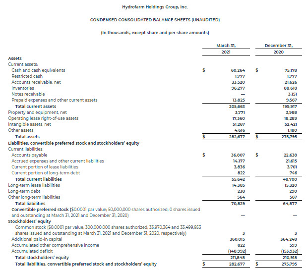 FAIRLESS HILLS, Pa., May 13, 2021 (GLOBE NEWSWIRE) — Hydrofarm Holdings Group, Inc. (“Hydrofarm” or the “Company”) (Nasdaq: HYFM), a leading independent distributor and manufacturer of hydroponics equipment and supplies for controlled environment agriculture (“CEA”), today announced financial results for its first quarter ended March 31, 2021.