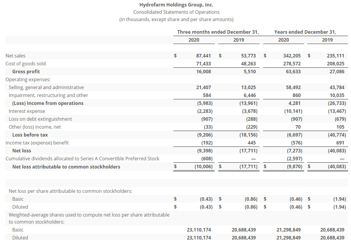 Hydrofarm Holdings Group Announces Fourth Quarter and Full Year 2020 Results
