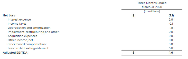 The following table reconciles Adjusted EBITDA to the net loss of $3.1 million for the three months ended March 31, 2020: