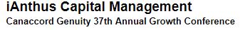 TORONTO, ON and NEW YORK, NY — (Marketwired) — 08/09/17 — iAnthus Capital Holdings, Inc. (“iAnthus” or “the Company”), (CSE: IAN)(OTCQB: ITHUF), which owns, operates, and partners with licensed cannabis operations throughout the United States, is pleased to announce that its Chief Executive Officer, Hadley Ford, will present at Canaccord Genuity’s 37th Annual Growth Conference on Thursday, August 10th at 12:30pm ET at the Intercontinental Boston Hotel.