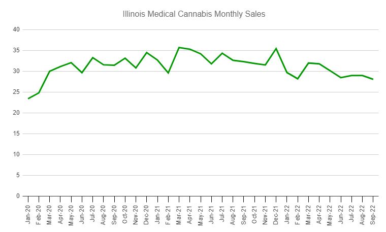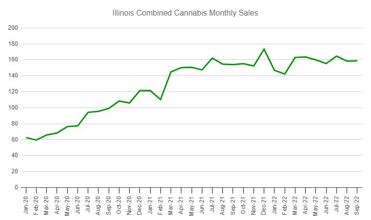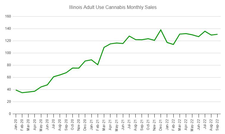 2021 adult-use sales of $1.38 billion increased 106% over 2020 in Illinois, and year-to-date sales of $1.15 billion have increased 15.0% so far in 2022. During September, sales to non-residents decreased from 31.8% in August to 31.5% of total sales: