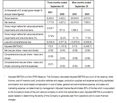 LONDON, ON, Nov. 16, 2021 /PRNewswire/ – Indiva Limited (the “Company” or “Indiva”) (TSXV: NDVA) (OTCQX: NDVAF), the leading Canadian producer of cannabis edibles, is pleased to announce its financial and operating results for the third quarter of fiscal 2021 ended September 30, 2021. All figures are reported in Canadian dollars ($), unless otherwise indicated. Indiva’s financial statements are prepared in accordance with International Financial Reporting Standards (“IFRS”). For a more comprehensive overview of the corporate and financial highlights presented in this press release, please refer to Indiva’s Management’s Discussion and Analysis of Financial Condition and Results of Operations for the Three and Nine Months Ended September 30, 2021, and the Company’s Condensed Consolidated Interim Financial Statements for the Three and Nine Months Ended September 30, 2021 and 2020, which are filed on SEDAR and available on the Company’s website, www.indiva.com.