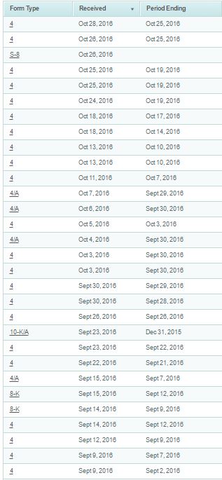 AMMJ has increased by 1011%, far outpacing the overall market move. CEO Corey Hollister sold 20K shares at $0.90 on October 25th according to the Form 4 filing. His remaining holdings exceed 1.2mm shares, so the sale wasn’t particularly noteworthy for its size, but it represents his first sale of the stock since the company began trading publicly in 2014.