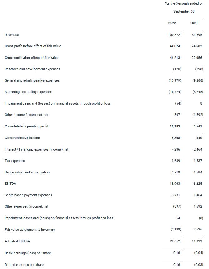 (1) Means EBITDA adjusted for changes in the fair value of inventory, share-based payment expense, impairment losses (and gains) on financial assets, non-controlling interest and other expenses (or income);