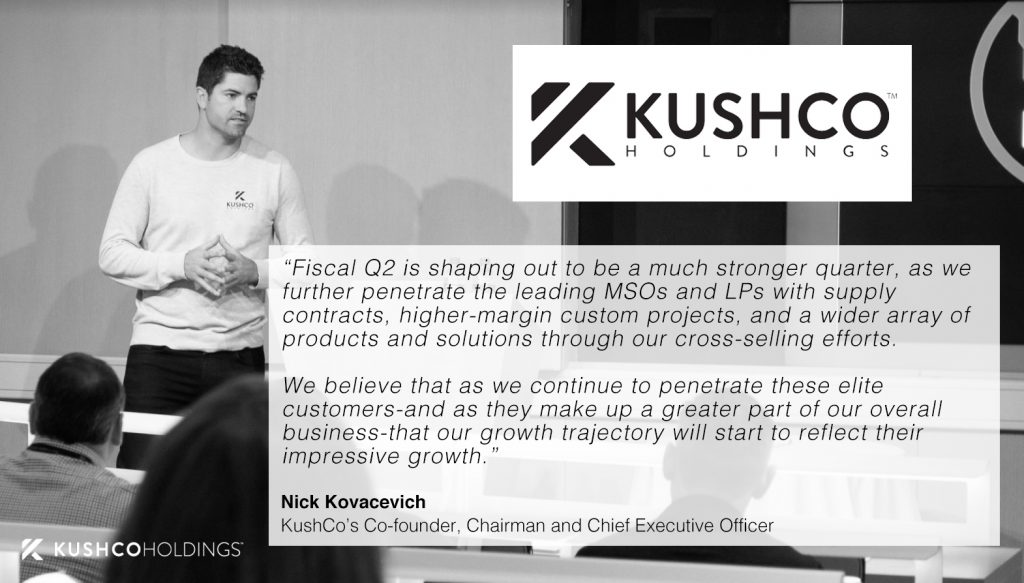 KushCo Holdings, a premier provider of ancillary products and services to the legal cannabis and CBD industries, recently reported $26.8 million revenue and positive adjusted EBITDA for the second consecutive quarter in fiscal Q1 2021. The company has shown that doubling down on its efforts to expand its business with leading MSOs and LPs is paying off. KushCo has increased its year-end guidance as the company moves towards achieving its new vision.