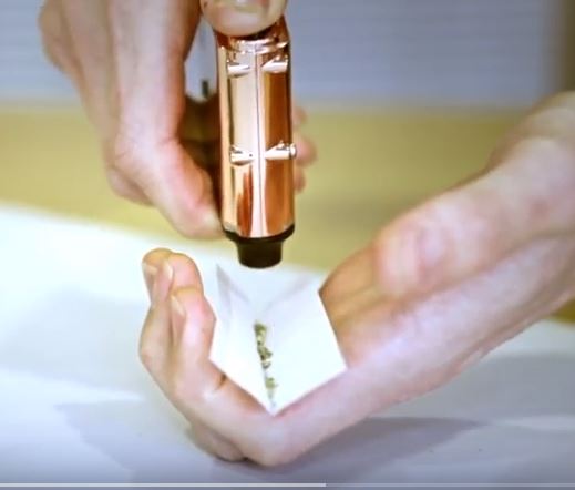 The bud-shredding device is being billed as a world-first “truly portable electric herb grinder” as part of the company’s pitch for a piece of the billion-dollar trade in legal dope.