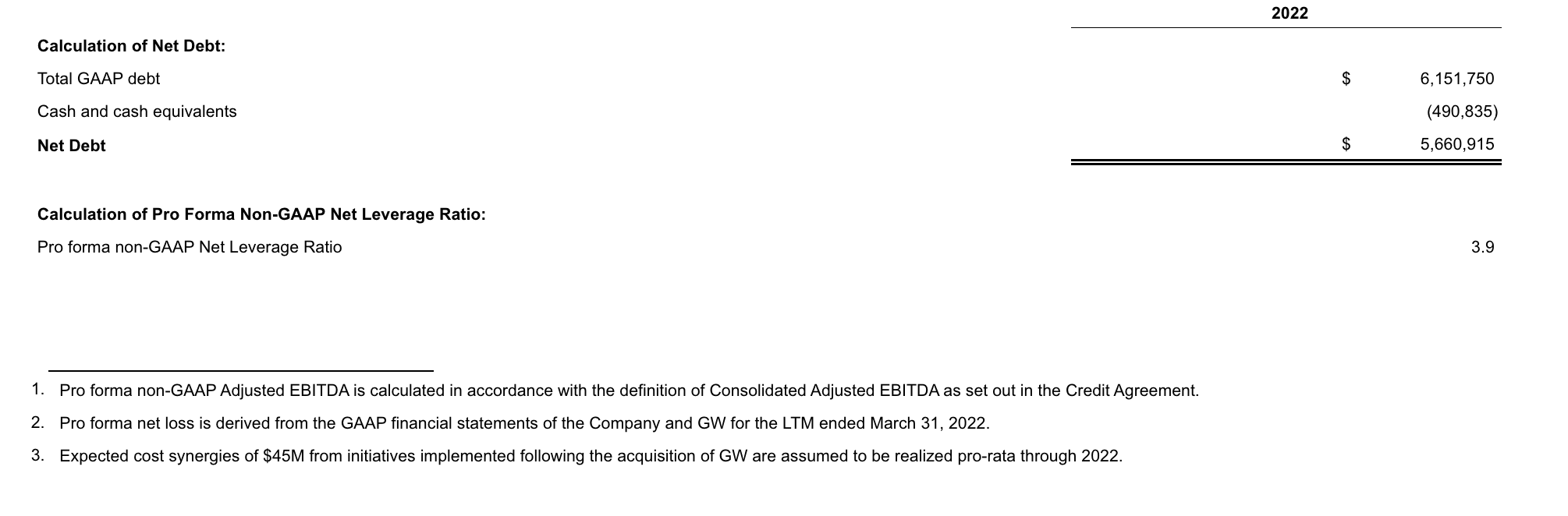 - Net leverage ratio of 3.9x1 as of March 31, 2022, demonstrating rapid deleveraging following the close of the GW Pharmaceuticals (GW) acquisition; on-track for target of less than 3.5x by the end of 2022