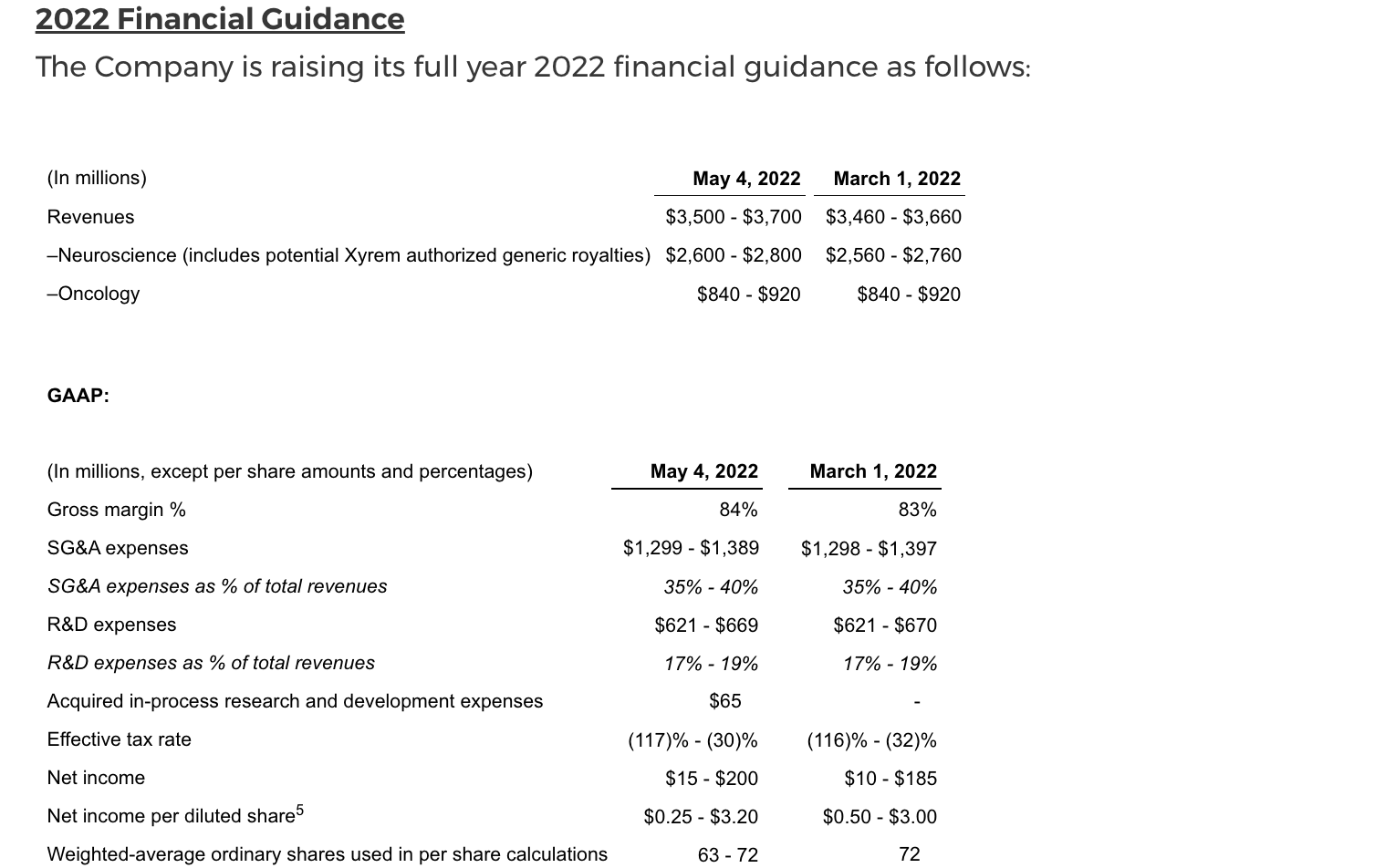 3. Excludes $59-$67 million of share-based compensation expense and $2 million of transaction and integration related expenses relating to the acquisition of GW from estimated GAAP R&D expenses.