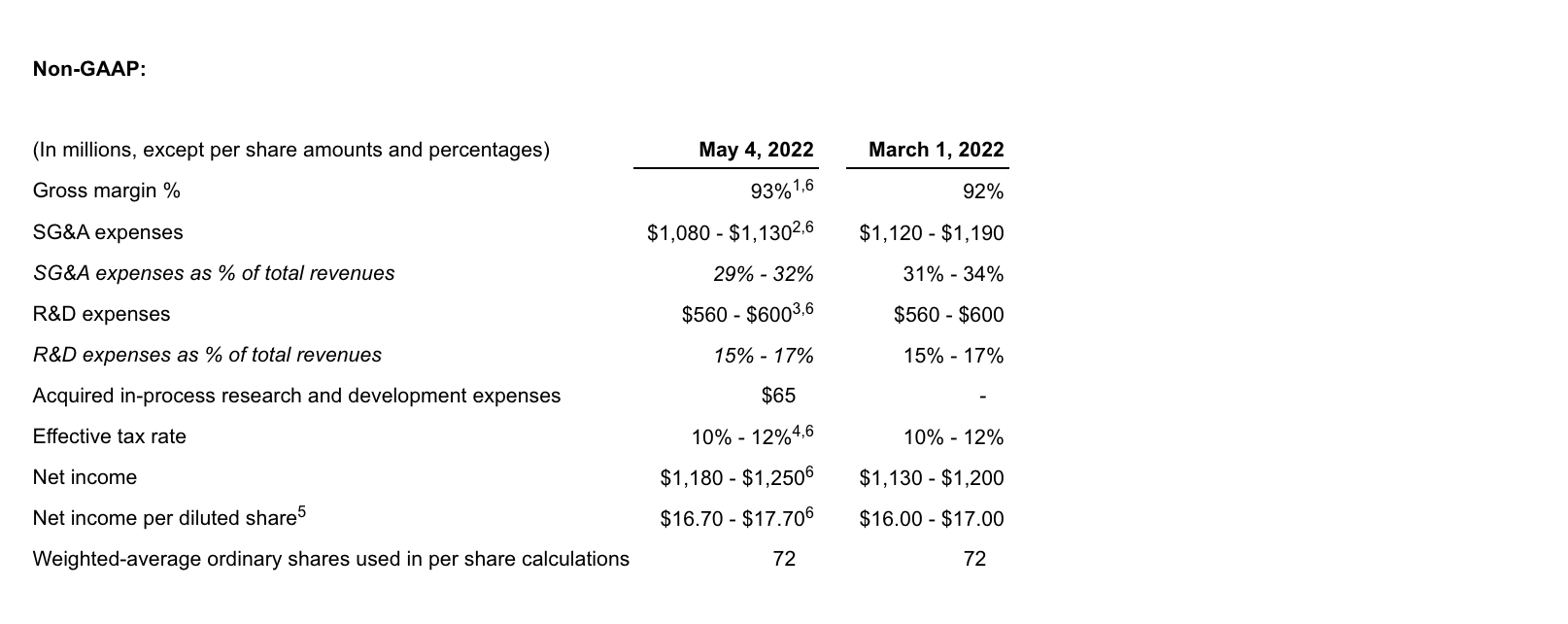 6. See “Non-GAAP Financial Measures” below. Reconciliations of non-GAAP adjusted guidance measures are included above and in the table titled “Reconciliation of GAAP to non-GAAP Adjusted 2022 Net Income Guidance” at the end of this press release.