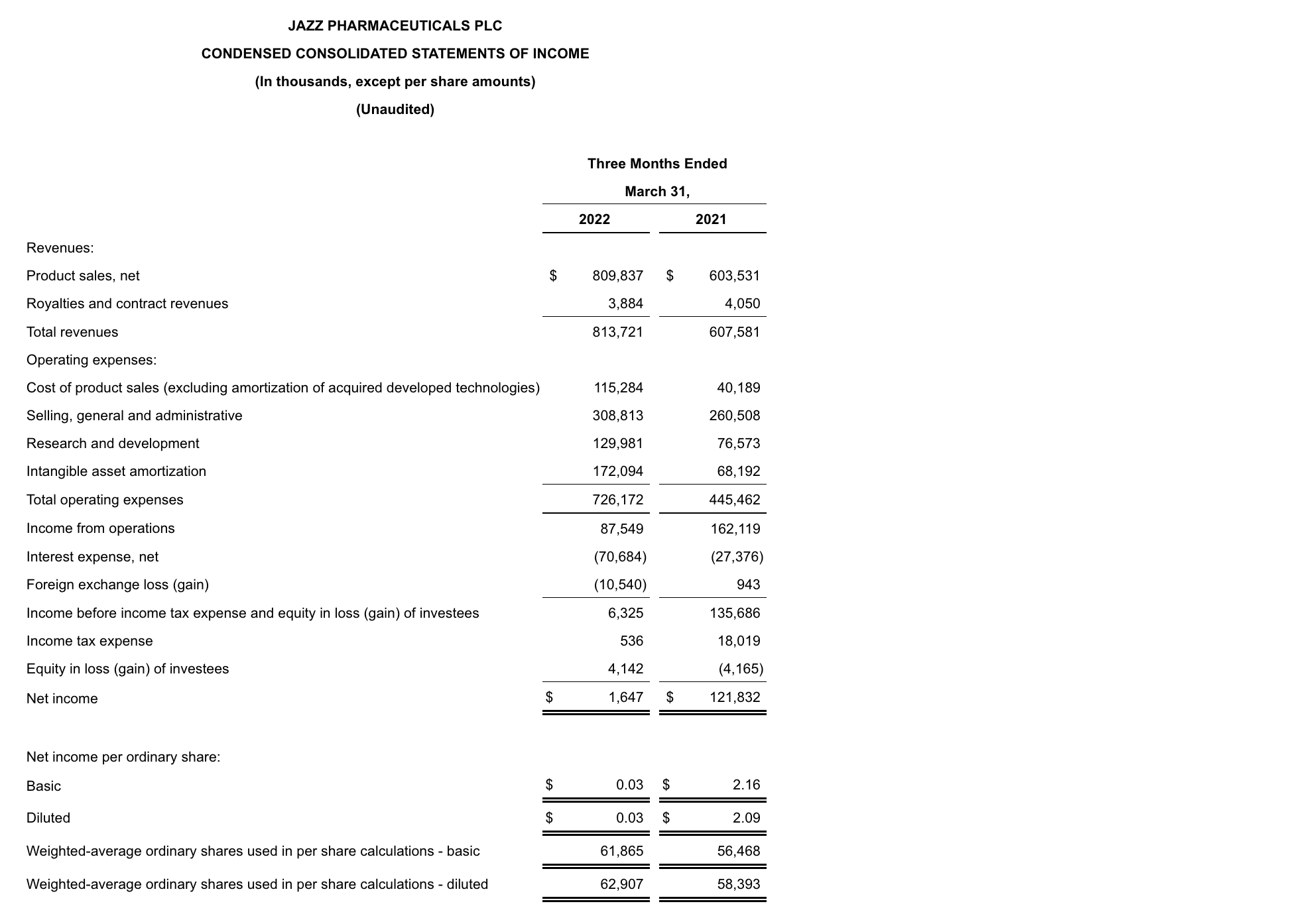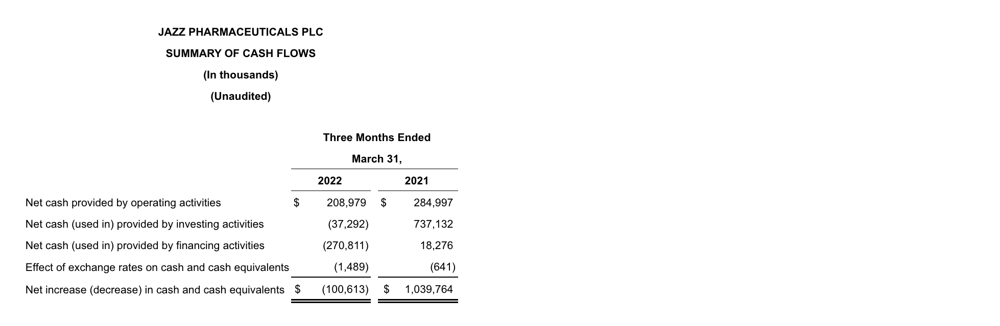 DUBLIN, May 4, 2022 /PRNewswire/ — Jazz Pharmaceuticals plc (Nasdaq: JAZZ) today announced financial results for the first quarter of 2022, raised 2022 financial guidance and provided business updates.
