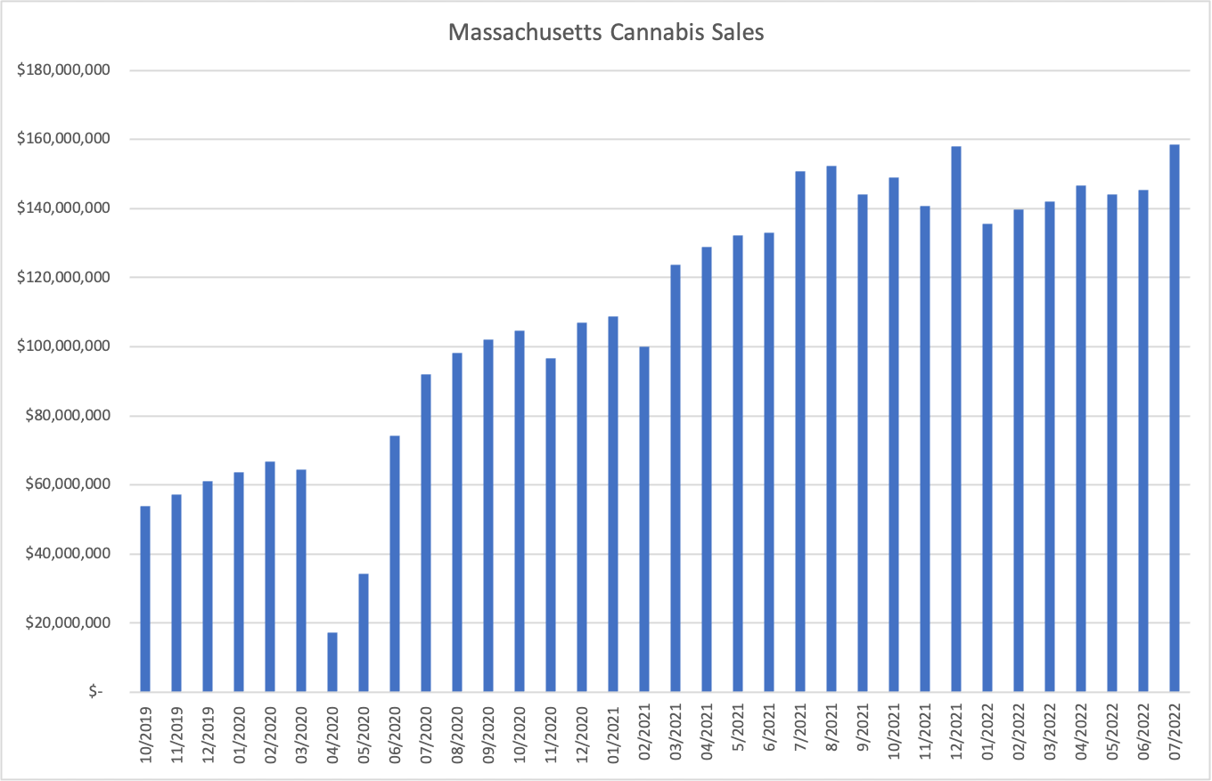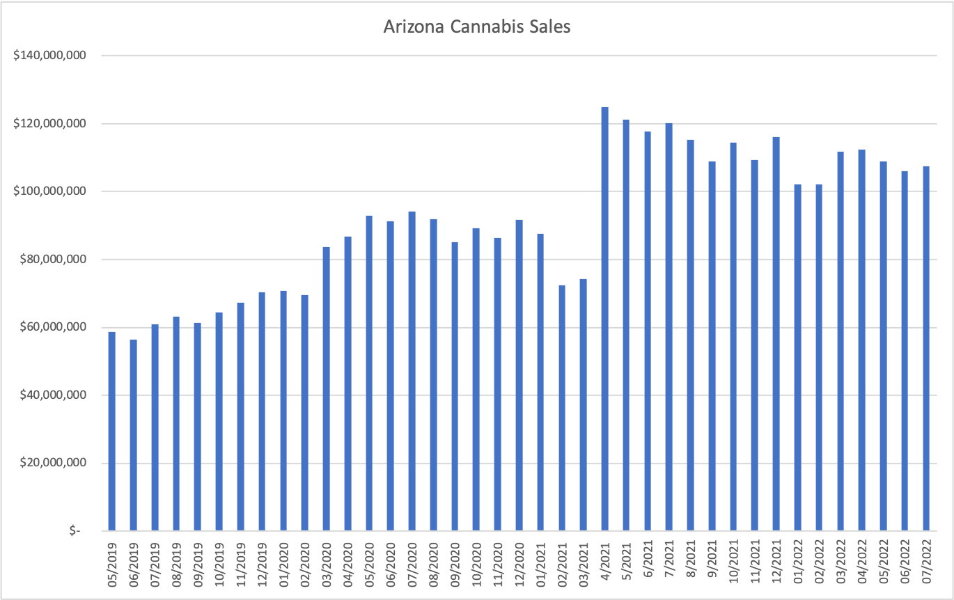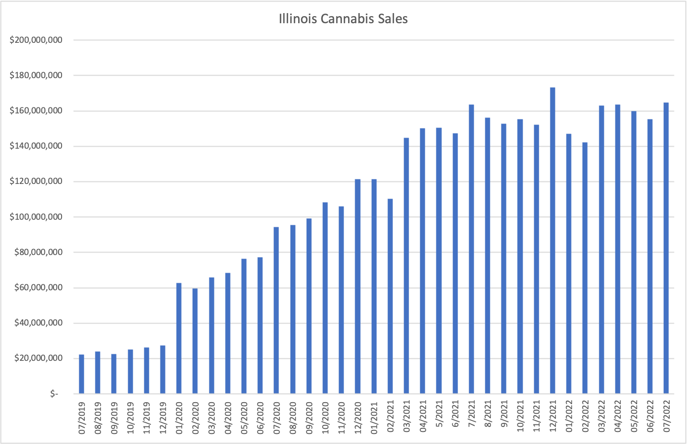 We previously published data released by the state showing that sales grew 6% from June and increased 1.6% from July 2021. BDSA estimated sales of $164.6 million, up 6% sequentially and up 0.6% from a year ago. Compared to last year, flower sales declined 3%, pre-rolls jumped 31%, ingestibles fell 5% and concentrates increased 2%.