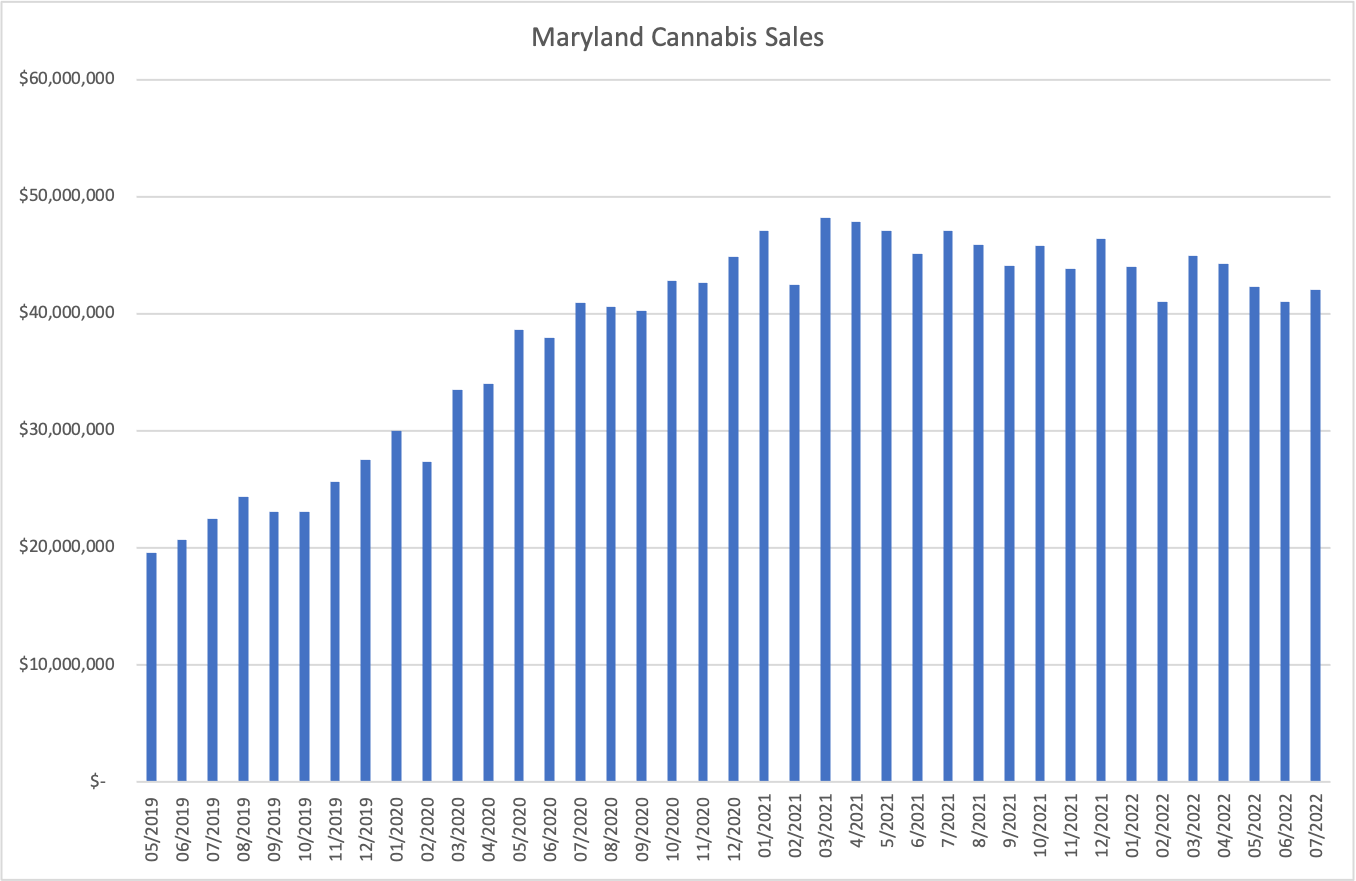 Sales increased 2.5% from June to $42 million, down 10.7% from a year ago. Flower sales decreased 8%, pre-rolls declined 9% and concentrates fell 18%, while ingestibles were down 3% year-over-year.
