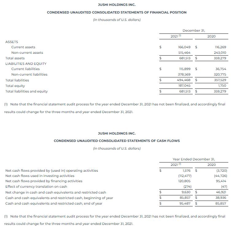 Jushi Holdings Inc. Reports Fourth Quarter and Full Year 2021 Financial Results