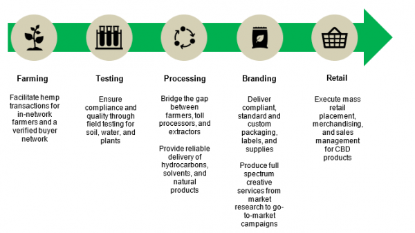 With the addition of the new hemp trading business, KushCo’s ecosystem now services farmers, operators, extractors, brands, and distributors of legally compliant hemp-derived CBD across the entire value chain (see figure 1). With a network of more than 6,000 brands, producers, and suppliers, KushCo is able to provide end-to-end services with the ability to deliver and market hemp biomass from the farmer all the way to retail markets.